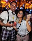 Dressed as nerds, the brunette beauty and her fiancé Roger Mathews playfully fed each other red and black licorice pieces, energy filled gummy bears and Swedish Fish. Farley showed off her engagement ring as she noshed on her favorite sour gummy worms throughout the night.