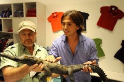 Industry tastemakers & trendsetters (including Lacoste CEO Steve Birkhold, publisher Courtland Lantaff and TV personality Jonathan Cheban) sipped on “croc-tails” by Stoli and snapped shots in the Miami-themed photo booth. With one of Lacoste’s embroiderers on-site, guests had the opportunity to monogram their classic polos. Those with a sweet tooth filled their goody bags at a special green candy bar after checking out artist Trong Nguyen’s interactive mixed media exhibit, which simulated a fan-boat ride for guests in the store’s exhibition space (one lucky raffle winner will get a real airboat tour through the Everglades). Nguyen created the piece as an homage to the Everglades Foundation, a non-profit Lacoste is working with in honor of the brand’s new South Florida presence. In addition to their ongoing support of the Everglades Foundation, Lacoste donated fifty percent of proceeds from the evening’s sales to the group.