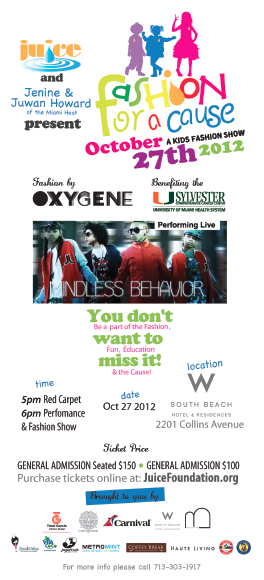 “I’m really excited about this year’s Fashion For A Cause! We’ve teamed up with the Sylvester Comprehensive Cancer Center once again; and superstar oncology patients from the center, along with celebrity’s kids, will be strutting down the runway. I’m also ecstatic to announce that Mindless Behavior will be performing at this year’s event,” Jenine Howard said of the highly-anticipated event.