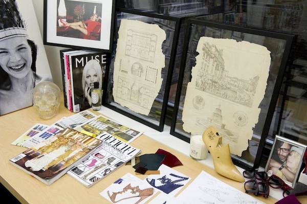 I have shoes from PLV Studio on my desk to help as a reminder to understand the DNA of my brand’s successes and think about how we translate that into our future ideas. I always have materials on hand to sketch new designs that come to me throughout the day.