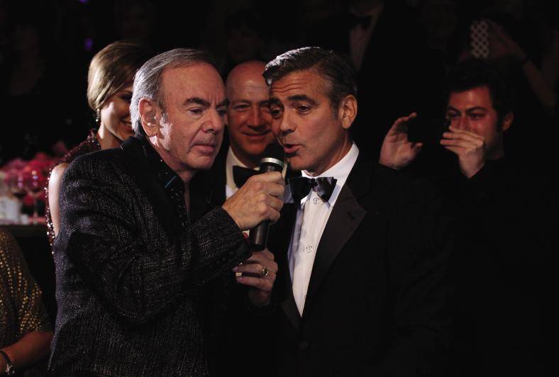 Believe it or not, there is one thing in life that terrifies George Clooney. That Oscar winner was forced to face his fear of public singing while being honored at Barbara Davis’ October 20 Carousel of Hope gala. Clasping a bottle of wine for liquid courage, the actor, who received the evening’s “Brass Ring Award” for his many philanthropic efforts, joined Neil Diamond for a rousing rendition of “Sweet Caroline” at the Beverly Hilton Hotel. Guests like Quincy Jones, Clive Davis and Jay Leno also helped to raise $2.5 million for the organization, which was sponsored by Mercedes-Benz, Belvedere and Chandon.