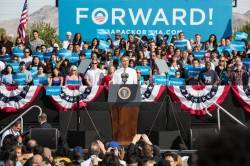 President Barack Obama was back in Vegas and held a grassroots supporters rally at the Cheyenne Campus of The Community College of Southern Nevada in North Las Vegas this afternoon. Sheila E. performed and actress Eva Longoria delivered remarks as well. Also in attendance, Sen. Harry Reid and singer Ray J. Photographer Erik Kabik shares his best photos from the event.