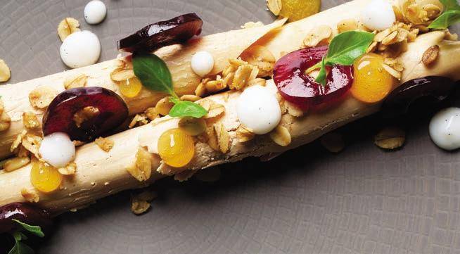 For dessert, my pastry chef is outstanding. The beet dessert is a favorite. The root is made with dehydrated beets and chocolate. A lot of people talk about this dish.
