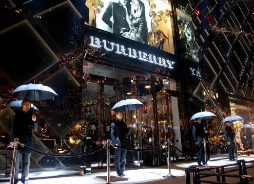 The party started with a fancy display of flair by having confetti rain down from the roof while “London Calling” by the Clash echoed throughout the store. The night pretty much carried on in organized chaos with attendees enjoying a performance by Carl Barat of the Libertines (an English rock band for those unfamiliar). All of the excitement and anxiousness was for good reason, the store was two years in the making and we have been teased for weeks looking at an almost completed store. But now the huge five-story store (the second largest U.S. location) is open and we can shop and enjoy the fashions that the London-based brand and it’s creative director, Christopher Bailey (who created the plaid glass façade on the store), are known for, including the iconic trenches and signature Burberry print.