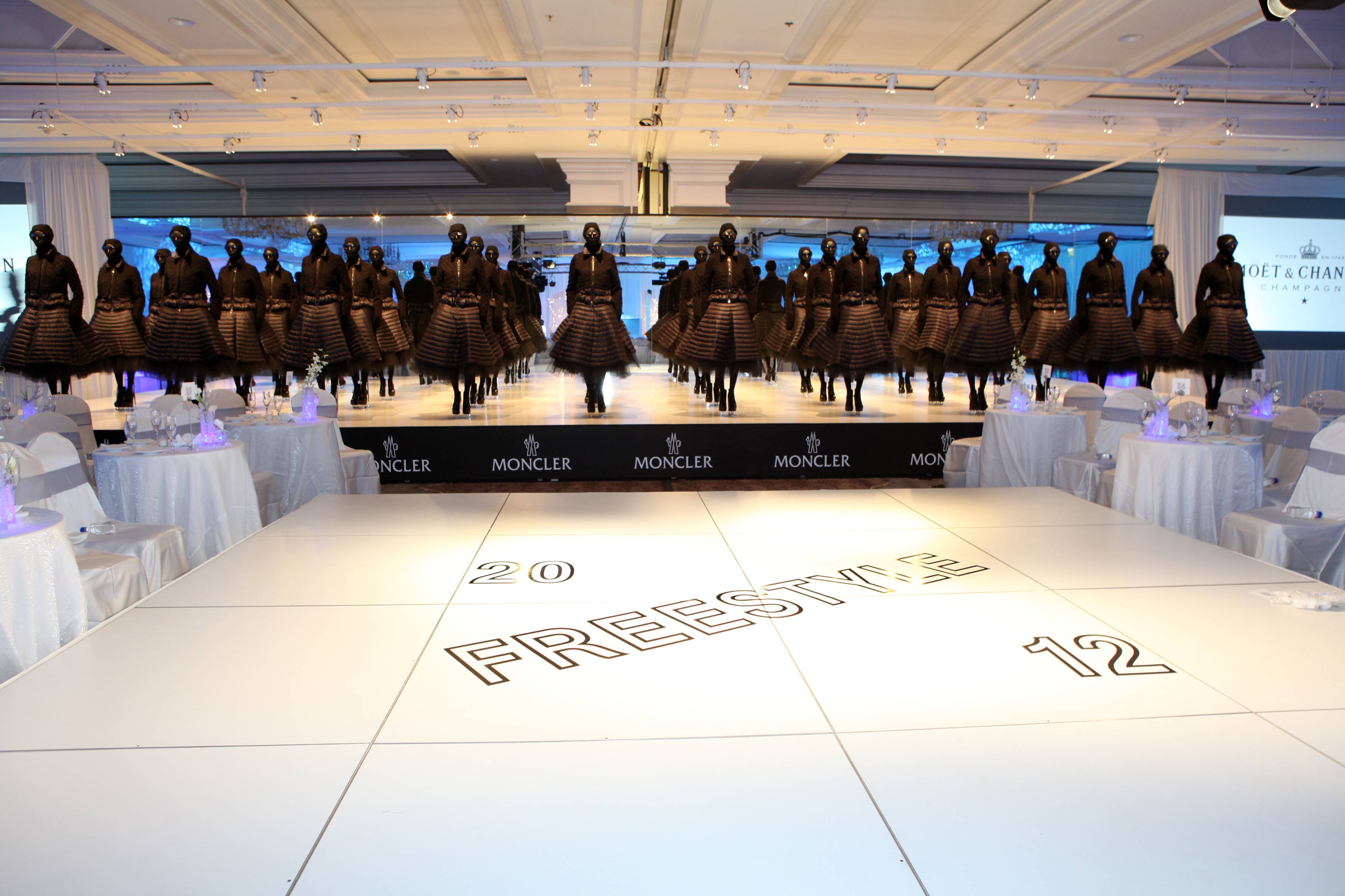 Moncler doesn’t do fashion shows, they do fashion installations, and their impressive army of foot soldiers at the Aspen Art Museum’s Freestyle benefit on Friday was a stunning success. Party-goers gathered for a champagne and caviar cocktail hour, mingling among silent auction items which included Bottega Veneta and Lanvin handbags, a Loro Piano cashmere printed blanket and a three-stone Piranesi ring.