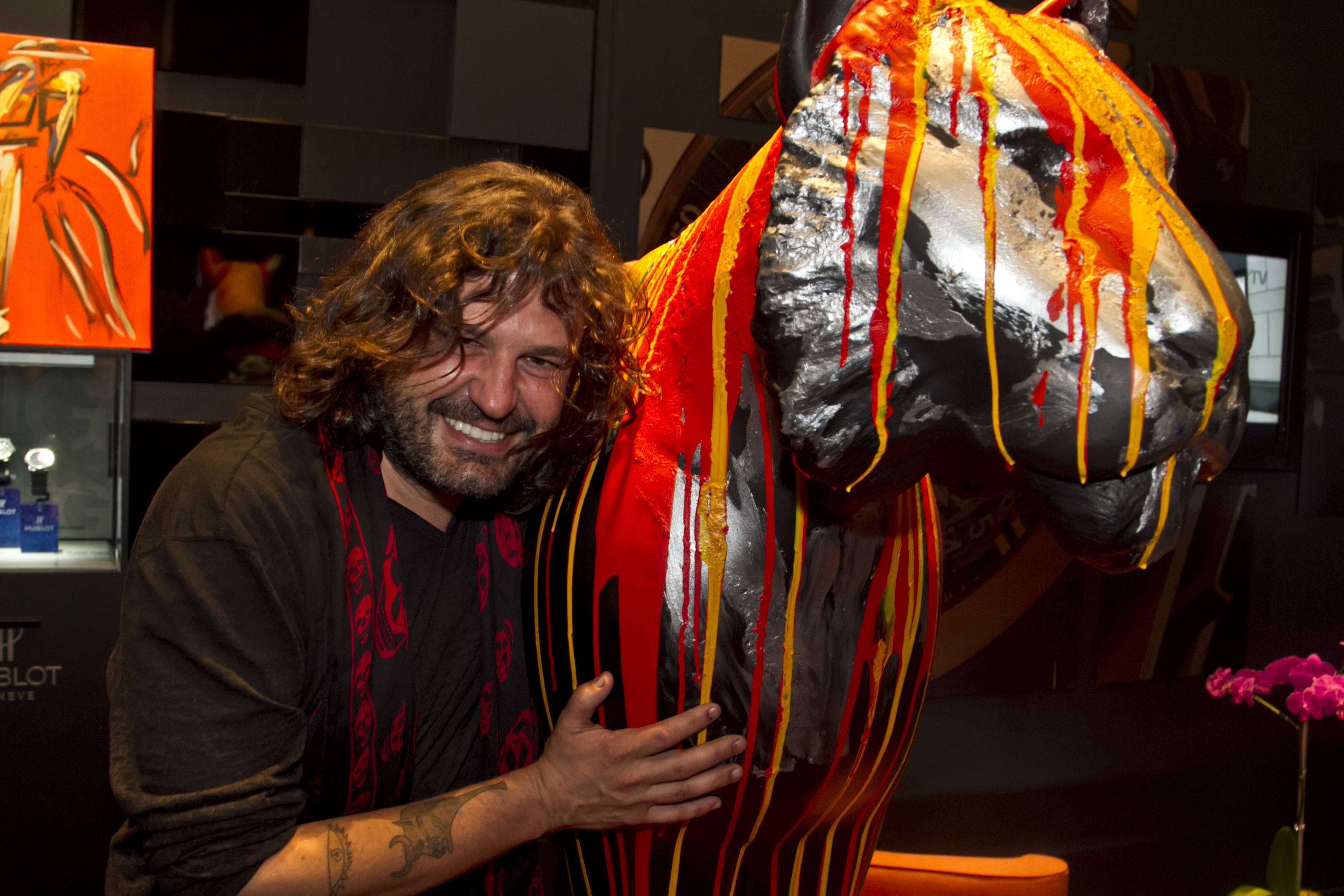 Following a very special unveiling of a Domingo Zapata installation at Hublot Boutique at Bal Harbour, Ferrari and Haute Living hosted artist Domingo Zapata’s poolside bacchanal. The blowout included a private dinner for VIPs including actor Adrian Grenier, artist Damian Hirst, Jenine and Juwan Howard and Lance Bass as well as a larger party in the garden. Zapata’s canvases set the stage for the party and his sculpture lined the hotel’s infinity pool as did a shiny red Ferrari that had managed to make its way to the Philippe Stark-designed pool deck. Haute Ambassador Lea Black and publisher Kamal Hotchandani were also in attendance for the Miami Art Week party that didn’t show any sign of slowing down even after midnight. Then, the fete finally continued on at SET, the official afterparty.