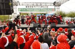 The streets of Town Square were flooded with 9,712 Santas on Saturday morning in support of Opportunity Village, winning Las Vegas the “World Santa Challenge” title for the second year in a row at the eighth annual Las Vegas Great Santa Run.