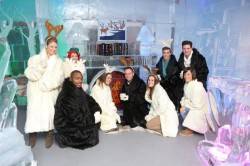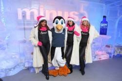 Guests mingled and decked the ice halls with Minus5 mascot Slushie the Penguin and posed with an assortment of festive holiday-inspired sculptures, including a snowman, elf and fireplace, while they enjoyed frosty cocktails.