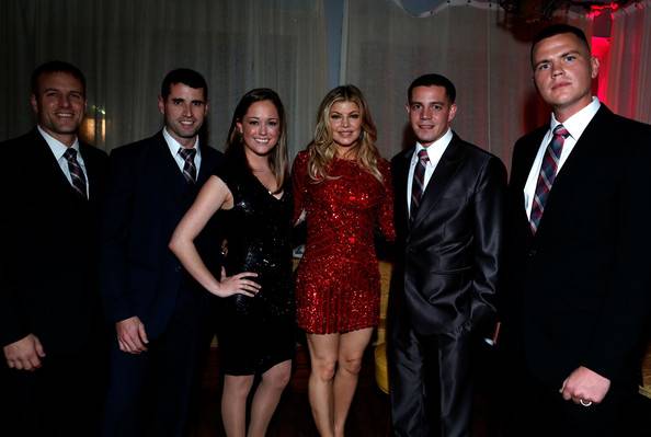 - Fergie added some seasonal razzle dazzle in a glittery red minidress at Voli Light’s holiday benefit in honor of Cell Phones For Soldiers; The Big Bang Theory‘s Kaley Cuoco also attended the bash at The Mondrian Hotel’s Sky Bar.
