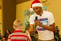 NBA All-star Russell Westbrook showcased his newly formed WHY NOT? Foundation this past weekend by teaming up with Citizens Caring for Children to host a Christmas party by surprising eighty Oklahoma City children living in foster care. Citizens Caring for Children (CCC) is an Oklahoma City-based nonprofit organization that provides clothing, shoes, books, school supplies, mentors and other necessities to children who have been victims of either abuse or neglect and are now living in state custody.. Through the WHY NOT? Foundation, Mr. Westbrook sent each of the children home with backpacks filled with gifts, as well as new shoes provided by the Jordan Brand.