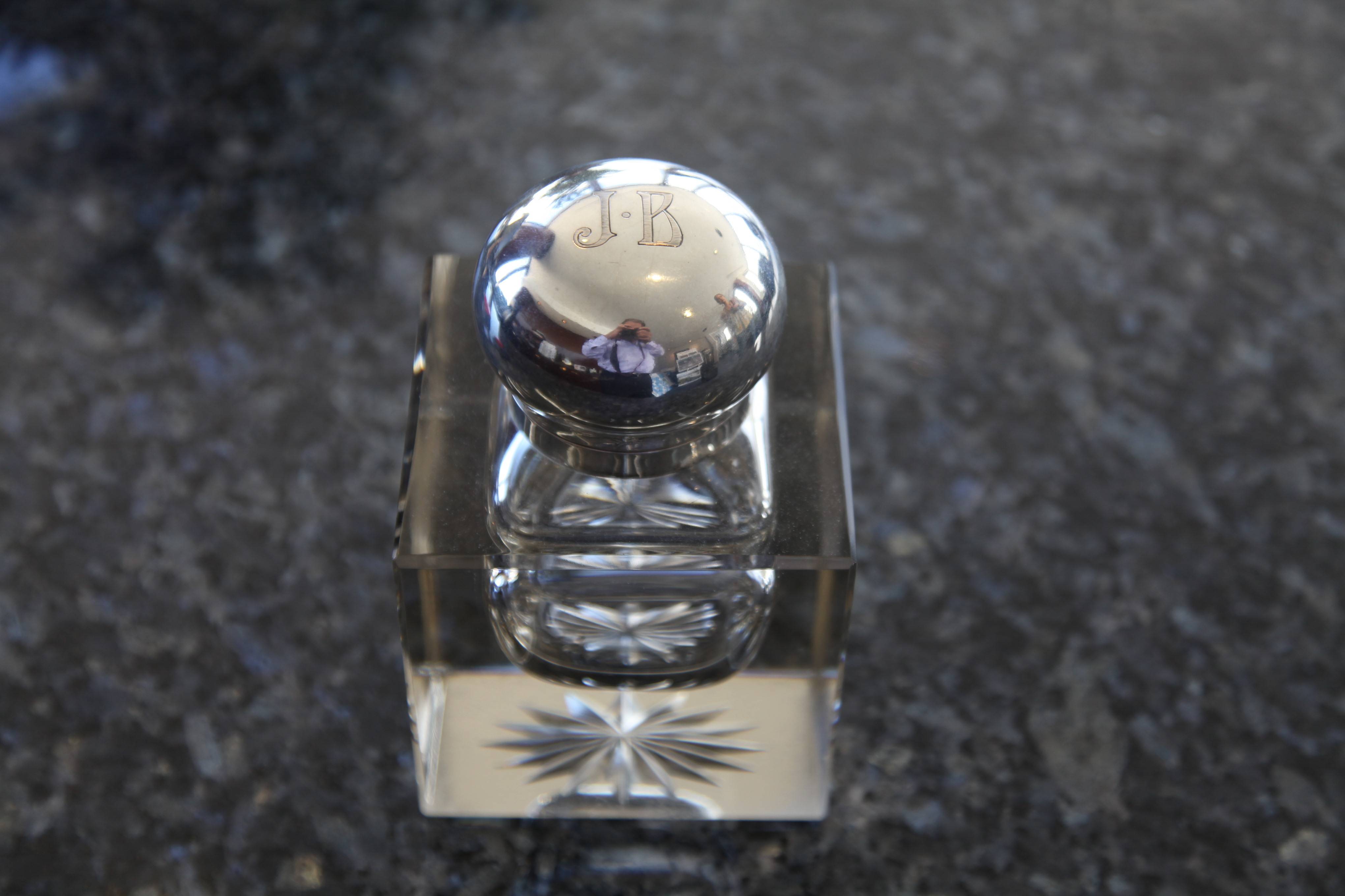 1. Inkwell- An antique crystal inkwell, which we found in New York, coincidently bearing my initials and gifted to me by my darling wife, Yolanda. I collect vintage limited edition fountain pens.