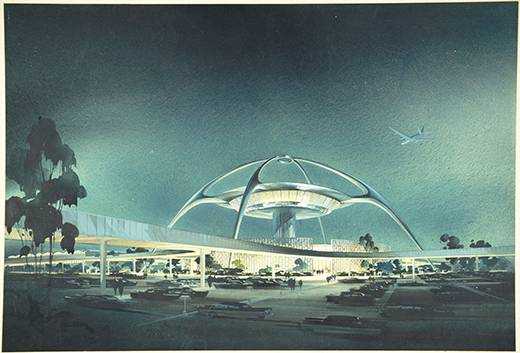 Image: LAX, Theme Building; perspective view, 1961. Architects: William Pereira and Charles Luckman.