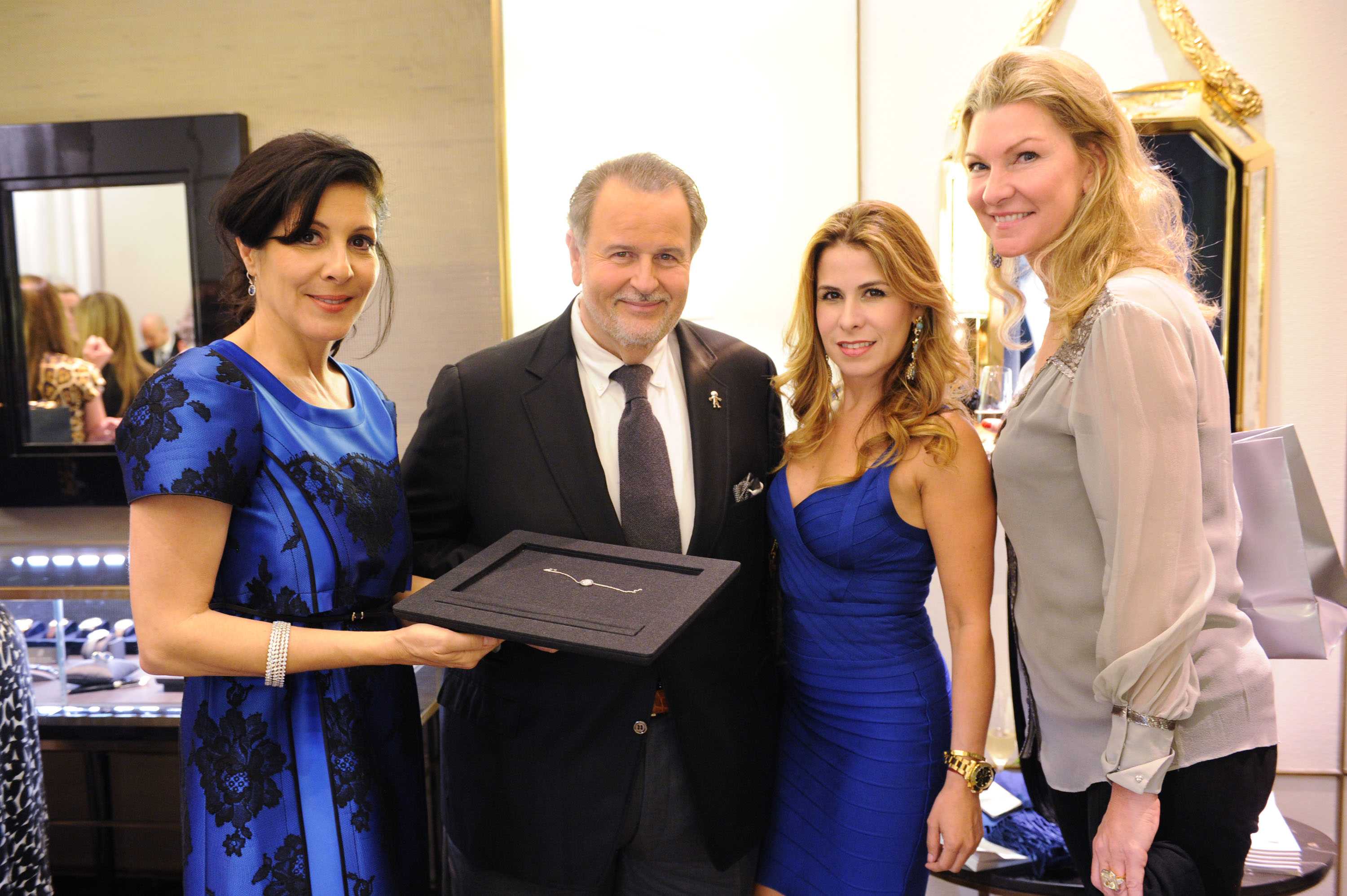 Guests like Chritian Slater with girlfriend Brittney Lopez, Jeff and Yolanda Berkowitz, Nelson and Carolina Hincapie turned out to view the new bracelet and enjoy a toast from Yolanda Berkowitz, who is a former Board Chair and active supporter of Voices For Children. Harry Winston’s support of the charity will aide their Children’s Needs Fund which provides for basic needs in the event of an emergency as well as educational needs like uniforms, tutoring and summer camp.