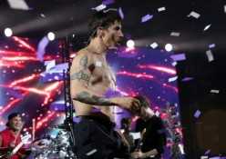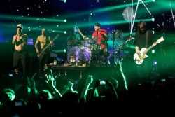 After kicking the evening off with a high-energy set by DJ M!ke Attack, the Red Hot Chili Peppers took the stage at 11 p.m., stopping only to commemorate the midnight moment and welcome 2013 by counting down and performing their special take of “Auld Lang Syne” as confetti showered the crowd. Dazzling the crowd from start to finish, the California-born band showcased hit after hit including “Dani California,” “Can’t Stop,” “Suck My Kiss,” “Under The Bridge” and closing out the encore with “Give It Away.”