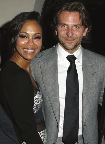 The on-again, off-again couple of Bradley Cooper and Zoe Saldana posed happily on December 7 as they attended an intimate soiree at Chateau Marmont for his Golden Globe-nominated film, Silver Linings Playbook. The Weinstein Company hosted the A-list dinner party, which counted Lexus and Purity Vodka among its sponsors. Guests like Mel Gibson, Jane Fonda and Nancy Meyers mingled at the VIP event alongside Robert De Niro, Naomi Watts, Christian Slater, Josh Brolin and the film’s director, David O. Russell. Diane Keaton was also on hand, though seemed a bit puzzled upon entry. When asked if she was looking for someone she responded, “No, I’m looking for a drink.”