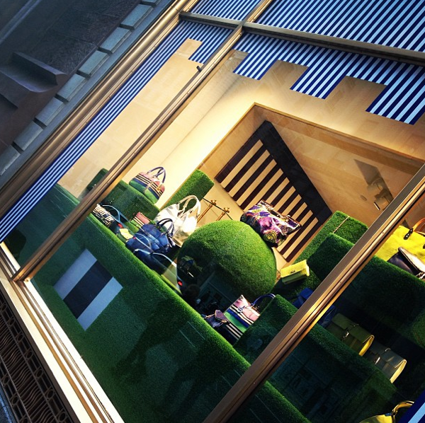 Even though it’s chilly outside, Henri Bendel is gearing up for warmer weather with its new NYC window display. “A pop of spring in our Fifth Avenue windows!” the luxury retailer posted on Instagram alongside images of brightly colored handbags resting on healthy green shrubbery.