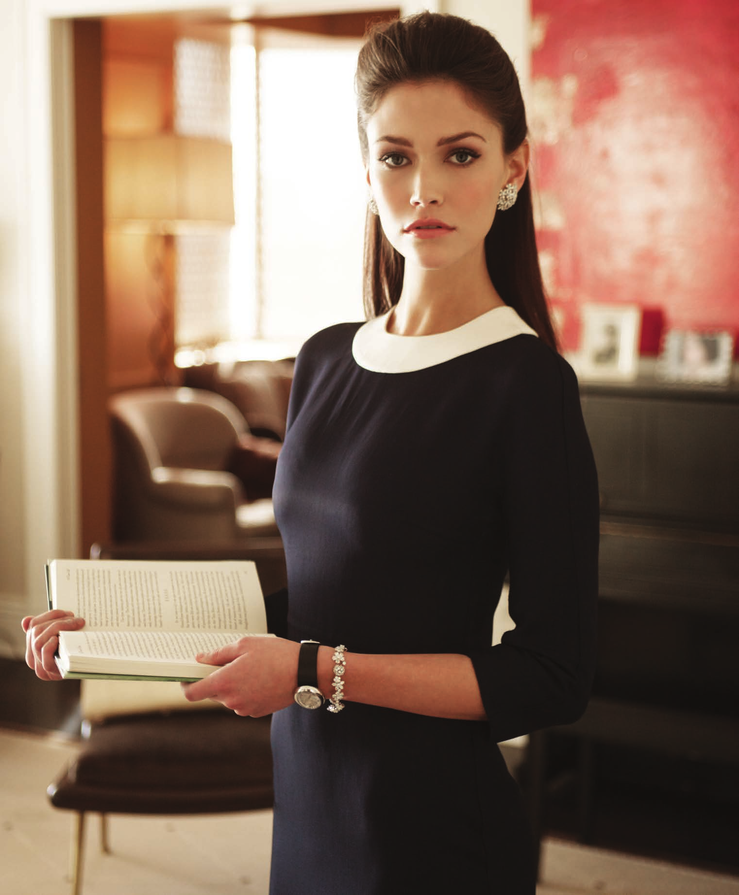 PIAGET 18-carat white gold timepiece with 56 brilliant-cut diamonds on black satin strap ($31,000) available by calling (877) 874-2438