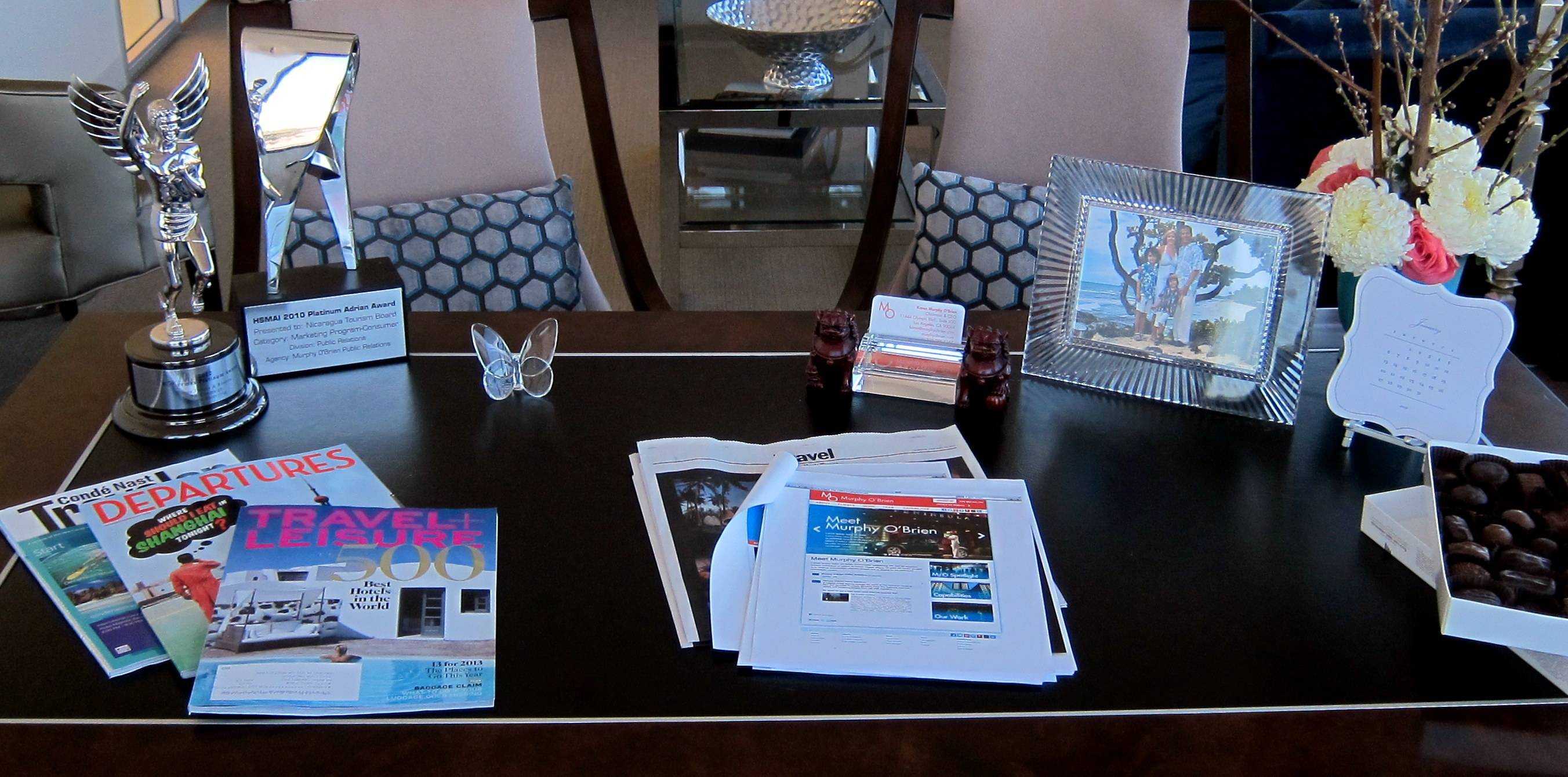 This week we’ve featured Karen Murphy O’Brien, the founder of Murphy O’Brien, an LA-based PR agency representing clients in travel, hospitality, real estate, food & beverage and lifestyle. Murphy O’Brien specializes in delivering high-caliber media coverage for clients and is one of the top independent PR agencies in the U.S., with 24 years of experience. Say Murphy O’Brien: “I love to surround myself with the people and places that matter the most and my desk reflects that notion.”