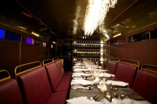 The first floor of the bus has a full fitting area with readymade limited edition items and fabric books. The upper deck has been made into a dining area exclusively for Quinn and selected guests, where they can enjoy cask-aged cocktails. http://duncanquinn.com/