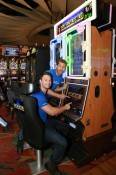After swiping their Club Palms cards for a chance to enter and earning additional entries by playing, five lucky players were drawn to compete in five different “Amazing Race” style competitions including competing against the dealer to land a hard blackjack, guessing flavors of gelato from Chocolat Bistro and finding a hidden suitcase across the casino floor with the guidance of a clue. The team that completed each challenge in the shortest amount of combined time overall won a $2,500 cash prize. The lucky winner, Jerry Daniels took home the cash prize and posed for photos with Jaymes and James.