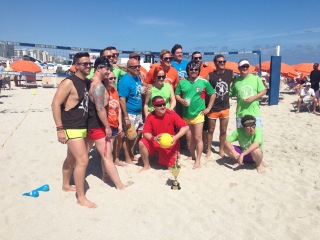 Ready, Set, Spike! Top Chef Spike Mendelsohn hosted a hilarious celebrity chef volleyball tournament featuring Chuck Hughes, Alex Guarnaschelli, Andrew Zimmern, Tim Love, Pat LaFrieda, Marcel Vigneron, Jeff Mauro, Johnny Iuzzini, Stephanie Izard, Todd Erickson, Justin Warner, Adrianne Calvo and Alberto Cabrera at The James Royal Palm’s beachfront. Balls were spiked, the competition was fierce , and hilarity ensued. The chefs were all wearing short shorts Team Dolphin won the stars were Josh Capon, Andrew Zimmern, Kris Wessel & Chuck Hughes.