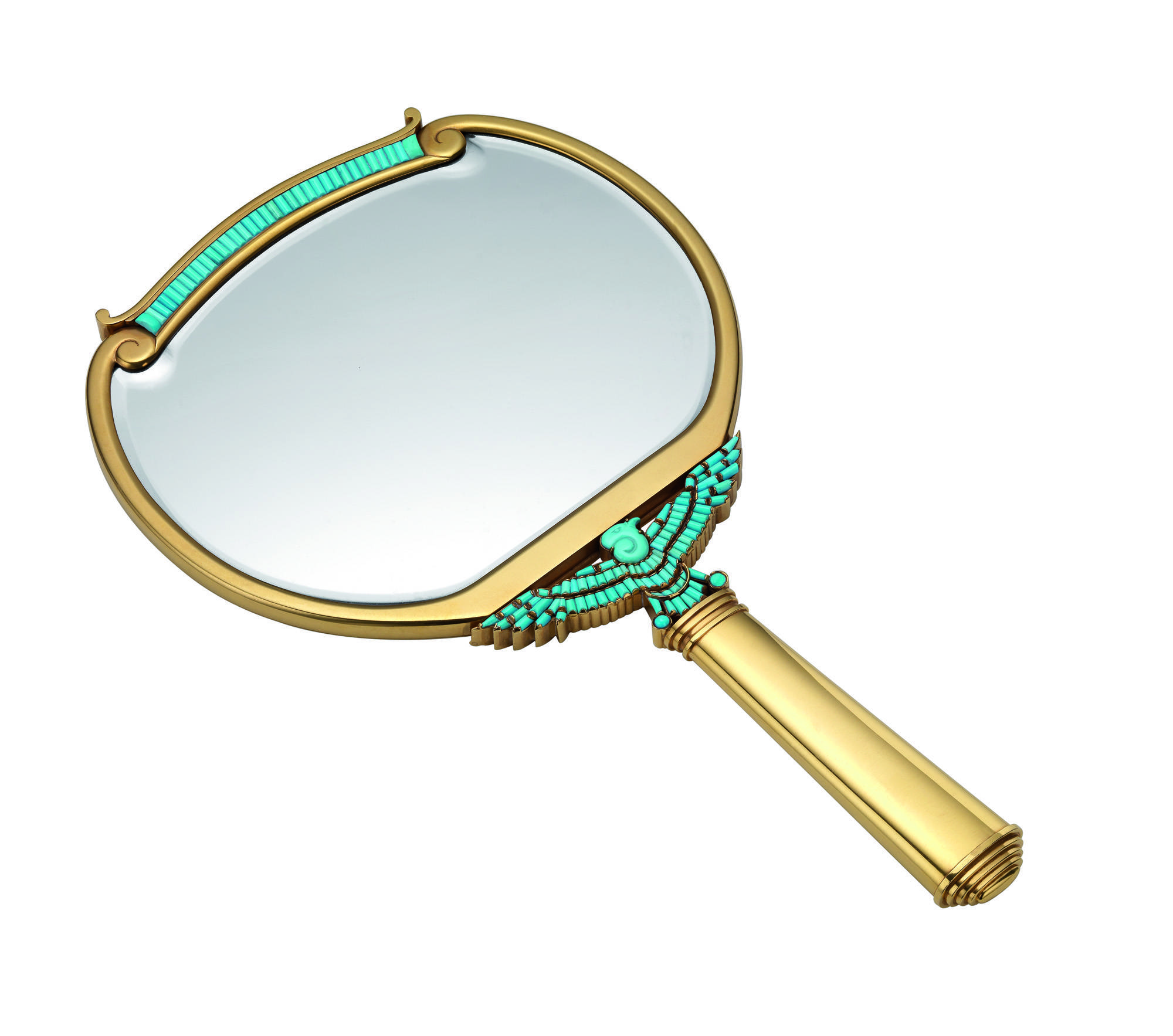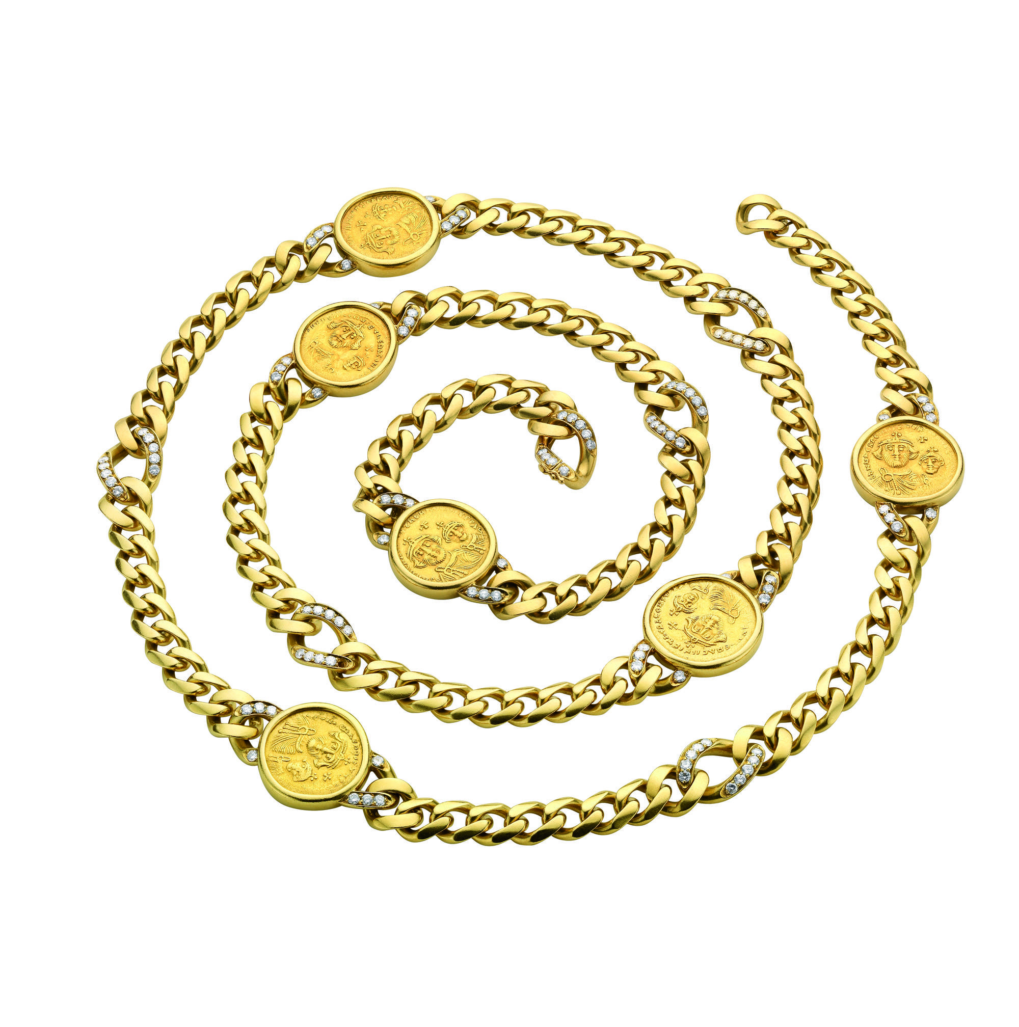 The exhibition includes Taylor’s first piece of Bulgari jewelry, an emerald and diamond En Tremblant brooch, the “Cleopatra Mirror,” the Taylor Burton fianceìe ring, a diamond brooch with a 23.44 octagonal step-cut diamond, an emerald and diamond necklace; a platinum sautoir with diamonds and sapphires; a Trombino ring that Taylor bought to compliment the platinum sautoir; and, lastly, one of Taylor’s most frequently worn pieces – a diamond and gold sautoir set with six ancient Roman coins.