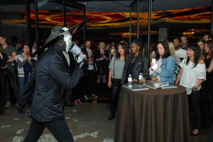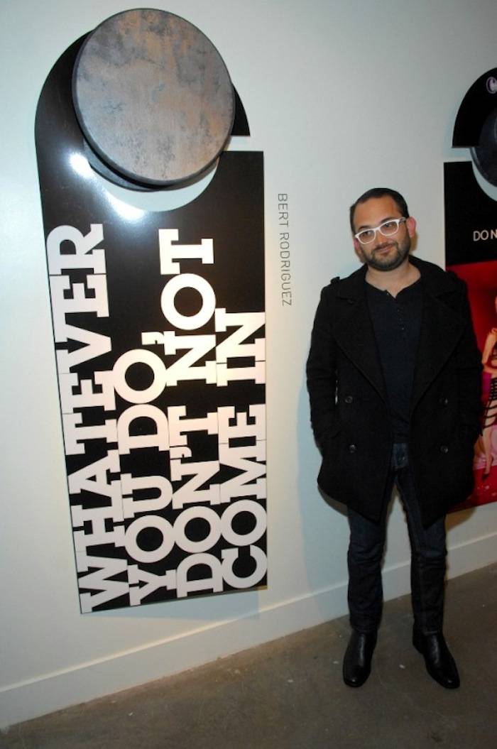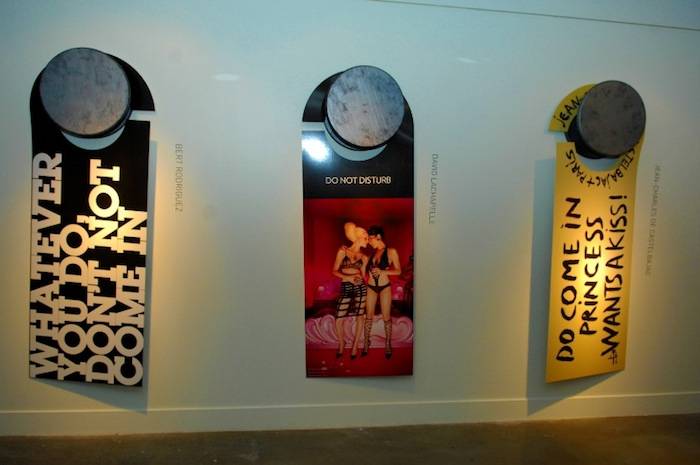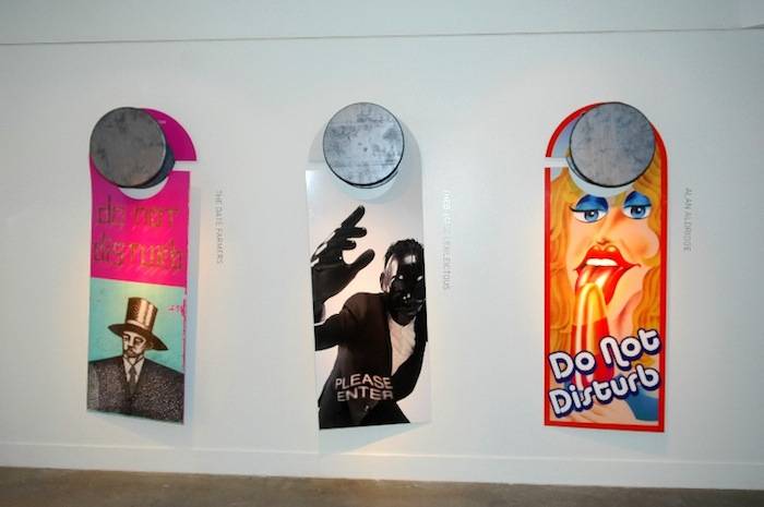 The Cosmopolitan of Las Vegas and Flaunt Magazine hosted a reception to celebrate their recent collaboration “Do Not Disturb” on Wednesday night. The event, held in the resort’s P3Studio, an evolving space where artists create projects that are interactive and participatory for guests, featured door hangars created by six world-renowned artists including: David LaChapelle, The Date Farmers, Theo-Mass Lexileictous, Jean-Charles de Castelbajac, Alan Aldridge and Bert Rodriguez. The Date Farmers, Theo-Mass Lexileictous and Bert Rodriguez were at the reception to showcase their work and speak with attendees.