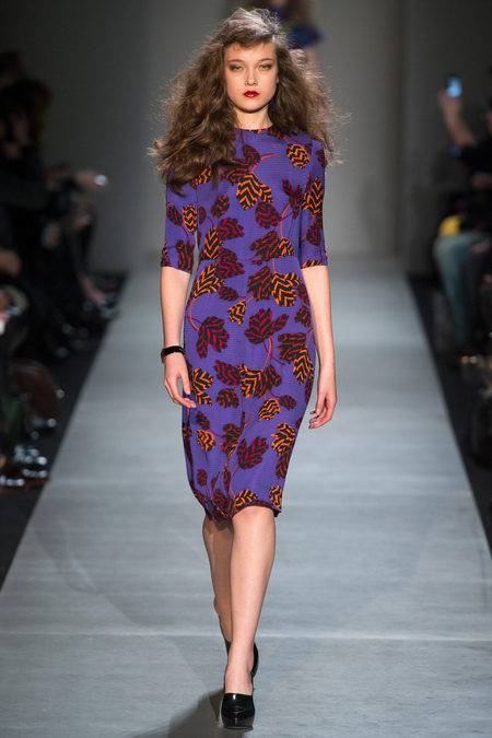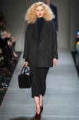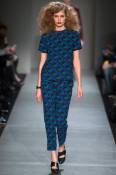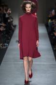 The retro themed show, loosely based on a voyage featured hatboxes as handbags in regal, deep navy blues and dark, chocolate browns. Oversized color blocked and plaid coats, ombré chunky knit sweaters and wide legs pants transitioned colors in shades of ox blood, bordeaux and blood orange. Excessively teased bed head and a cinnamon lip was sported as models came out in casual fitting silk tops and jumpsuits in an oversized painter interpretation of fall foliage.