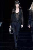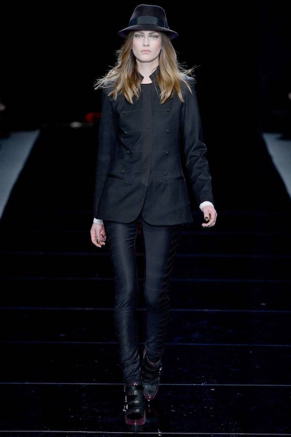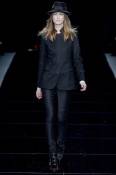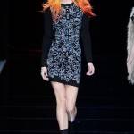 This season Nicole Miller was all about menswear with a sexy spin—and coming out to watch were Ashlee Simpson, Eve and the new host of The Face, Nigel Barker. Once the lights went down and the catwalk opened up, Nicole Miller, historically known for her low key elegance, turned heads on the runway this season with a decidedly more dangerous, bad girl edge. Lots of fur, leather and crazy orange streaked hair will certainly be sweeping through the city this coming fall.