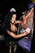 The bombshell brunette was surrounded by her husband, Gary, and seductress, Taylor Stevens, as she was presented with a sexy, three-tier Moulin Rouge and leopard themed birthday cake. The AVN Hall of Famer sipped on Three Olives Cake Vodka with pineapple juice from an over-the-top hot pink martini glass while blowing kisses at admiring fans throughout the evening.