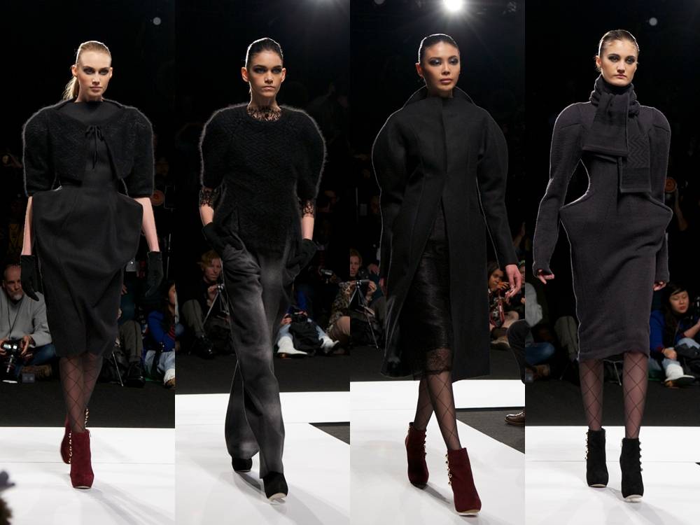 One featured designer that caught more than the corner of my eye was Heather McDonald and guess what? One has been behind scenes in the past with this little vixen and has seen her working her caboose off for those razor sharp cuts! Her cuts and silhouettes were sharp, edgy, cut throat, sleek and just damn right on point! The crisp lines, the volume of the shoulders, the use of wools and knits would keep one tucked in and warm, but looking like a billion bucks! Basing her theme for her collection, off of past film Metropolis, was not a risk she was taking, McDonald knew it would be our new future. Certain pieces were grasping for the future and adding pinches and dashes of twisted modern edge to the contoured silhouettes. Now for the crème de la crème…the gloves! Just throwing in a pair of seductive assassin like gloves, showed that certain looks set the character as a deceitful, untouchable temptress, but most desired. So, move out of the way world, Heather McDonald’s hear to battle Gucci, Alexander Wang or hell, who actually knows who she might battle! P.S. One word…timeless!
