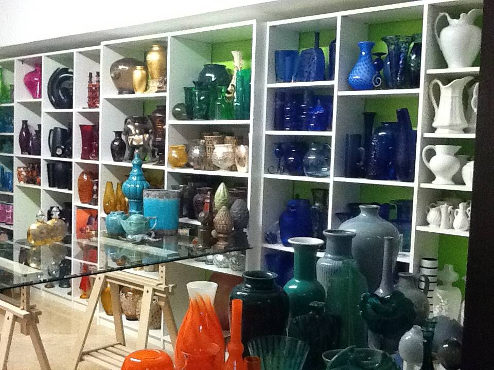 The Design District has many new high-profile inhabitants, but one is a bit smaller and more hidden than the others. BG Vintage, which refers to owner and social butterfly Brigitte Grosjean, is nestled upstairs, in the second story on the  corner of NE 40th Street and North Miami Avenue. The entrance is through an exotic stone and marble store, up some stairs and through a long corridor that houses interesting businesses on the second floor. It is here that Grosjean finally has a place to store and sell her pottery and glass collections. After combing through estate sales, and vintage stores from Key West to Palm Beach, Grosjean is presenting completed collections of hard-to-find pieces. You’ll find Vintage Lenox, McCoy and Hull and many more pottery and glassware objet grouped in color-coordinated collections. Interior designers and regular customers are finding what they need at BG Vintage. Another thing you’ll find is the charismatic Grosjean who has always known exactly where it was at, whether it was as a teen in London’s swinging 60’s, St. Tropez, Paris and Milan as a model booker. The 80’s and 90’s found Grosjean working in NY and Miami in public relations, getting ink for clients both north and south. Now she’s tooting her own horn and having a good time while she’s at it. Appointments suggested.