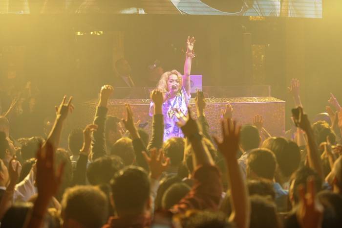After dinner, they made their way into the nightclub, where DJ Five led the charge in the deejay booth. As he announced Ora’s arrival, the club cheered and all eyes turned to the pop star, sparking a camera phone frenzy. The songstress and friends overlooked the dance floor from their VIP booth and took in the high energy club scene including Tao’s bottle fairy, who amazed Ora with her flying acrobatics.