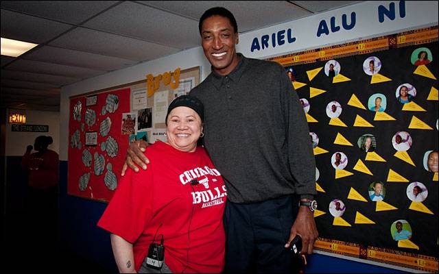 To celebrate Ariel Community Academy’s completion of the Illinois Standards Achievement Test, last Friday the Chicago Bulls hosted a special assembly with more than 600 students from the school. The assembly was also to kick off their spring break. Must have been nice, not only were the kids about to be out of school for a week, they also got the chance to hang out with Derrick Rose, Scottie Pippen and other members of the Bulls Organization.