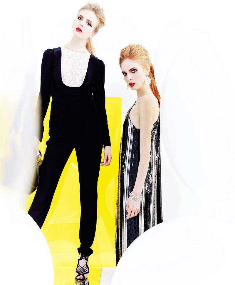 VALENTINO silk jumpsuit with beaded lace bib collar ($4,490) available at Valentino, 324 North Rodeo Drive, Beverly Hills, CA; (310) 247-0103 and 333 Bristol Street, Costa Mesa, CA; (714) 751-3300