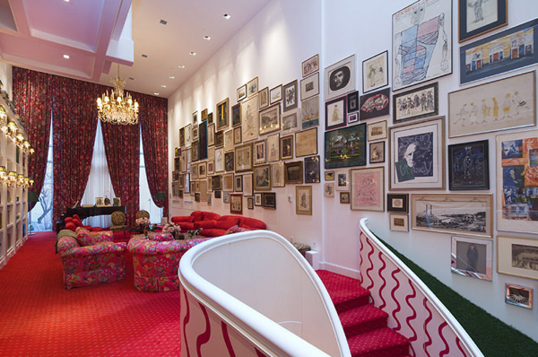 The 21-time Tony winner purchased the 20-foot wide house in 2009 for $12.5 million shortly after it was gut renovated by the previous owner. Prince then infused his own unique style on the place, plastering over a fireplace, painting zig-zags on the banisters, covering a wall of glass with heavy floor-to-ceiling draperies and installing bright red rugs — even astroturf.