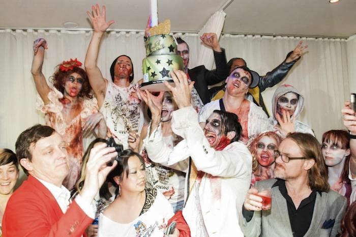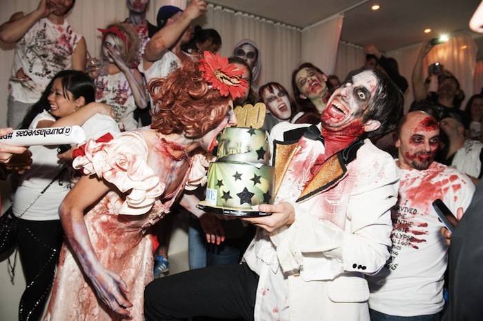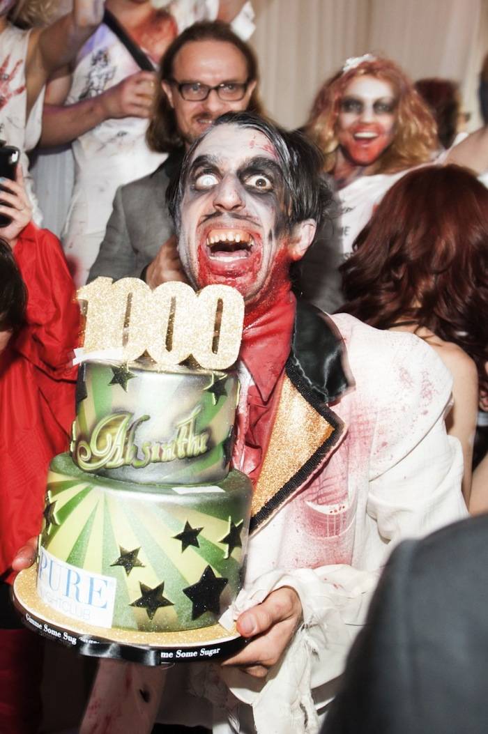 Pure Nightclub inside Caesars Palace turned into a zombie apocalypse as the cast of “Absinthe” took over the nightclub for their 1,000th show celebration. The entire cast, including The Gazillionaire, Penny Pibbets and Angel Porrino, made their way to their VIP booths on the main stage. The club was a sight to see as the highly acclaimed cast filled the stage all outfitted in full zombie attire.