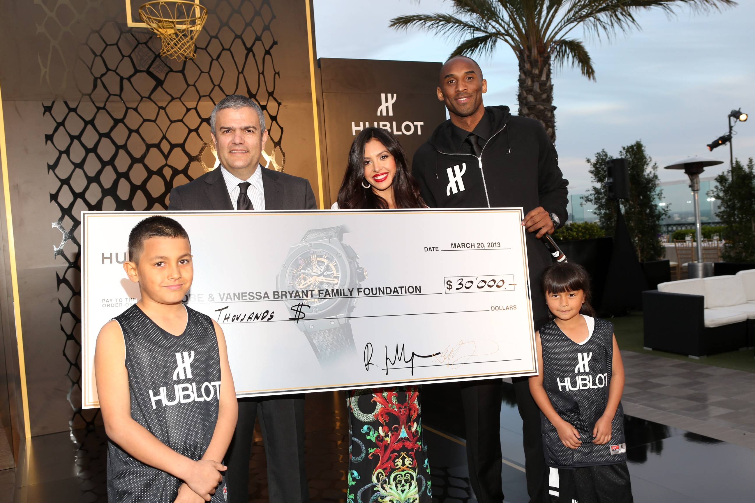 The presentation was followed by a basketball shoot-off with two children from After-School All Stars Los Angeles, a charitable beneficiary of the Kobe & Vanessa Bryant Family Foundation. Simply by taking shots from a makeshift basketball court constructed over the hotel’s rooftop pool, the contest raised $30,000 for the program.