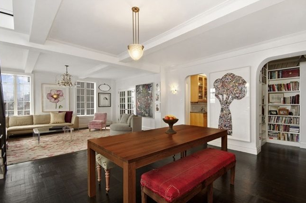Mary-Louise Parker‘s 10-room duplex is back on the market for the third time in the past year, reports The Real Deal. Located at 32 Washington Square West, the prewar co-op features five bedrooms, four and one-half bathrooms, a sprawling living/dining area with a wood burning fireplace and an eat-in kitchen with top of the line appliances. The unit also boasts 26 windows, which offer plenty of natural sunlight and views of the charming West Village. Though most of the interior captures the classic prewar character of the original design, Parker added a few eclectic, whimsical touches that appeal to her young children. According to More magazine, Parker commissioned a mural of an underwater barbecue, with an octopus brandishing multiple hot dogs, to spruce up the TV nook. She also set aside a narrow wall by the kitchen for her children to color using crayons.