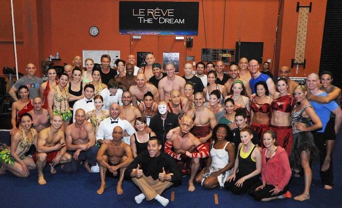 Comedian and stunt performer Steve-O was spotted backstage at Le Rêve – The Dream inside Wynn Las Vegas on Sunday night. Known for his spontaneous pranks, Steve-O joked around with the clown performers from the show and was seen jumping in to a small cart to take some candid photos with the cast members. After meeting the cast, Steve-O watched the 7 p.m. show from the VIP circle with a small group of friends before heading to the Riviera, where he headlined his stand-up comedy show currently touring the United States.