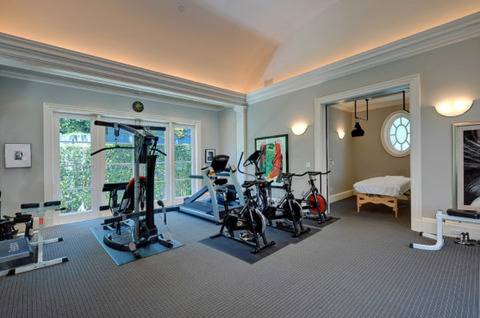According to the listing with The Agency, the mansion, which was built in 2001 and spans three levels, includes eight bedrooms, 17 bathrooms, four acres of land, a wine cellar, pool house, tennis court, putting green, custom movie room, library, three bars, gym, two safe rooms, separate quarters for help and special event staff that includes two beds and a living room accessible through a service entrance in the garage, a Gavin de Becker security systems with Crestron monitors throughout the house, a two-story oval foyer with crown molding and verde jade marble flooring, children’s suites, main rooms with 12’ high ceilings and three inch-thick mahogany doors, living room with 15’ ceilings, and more.