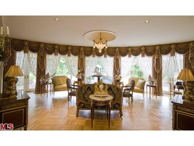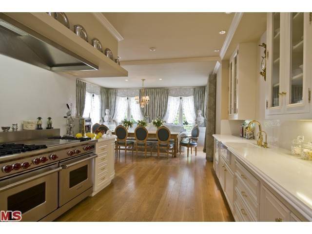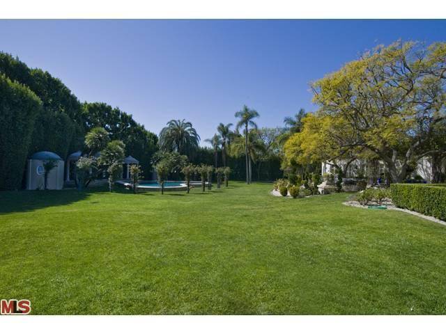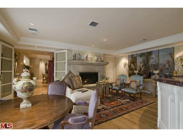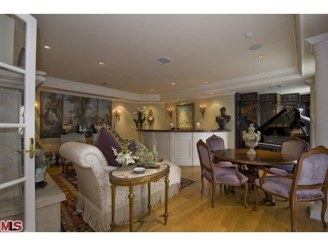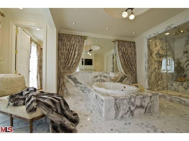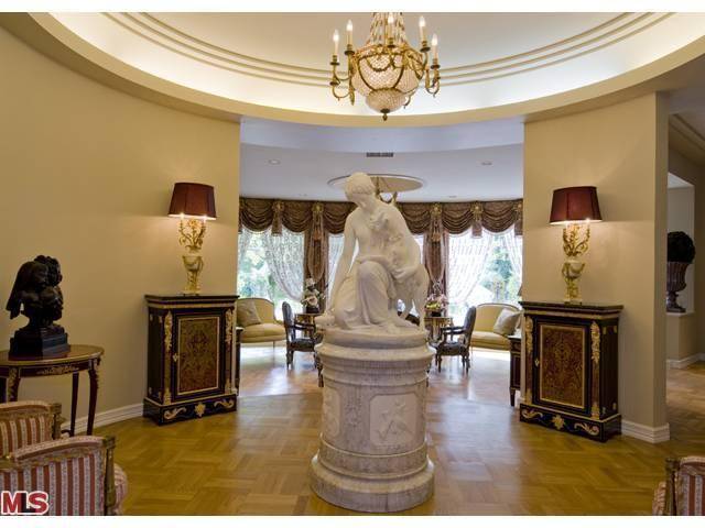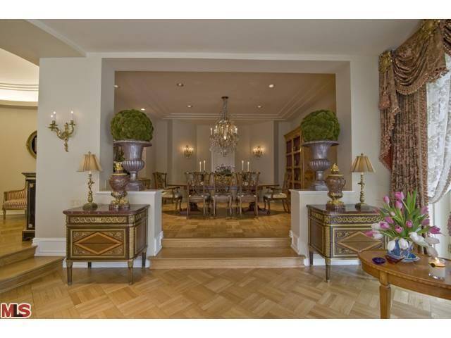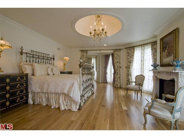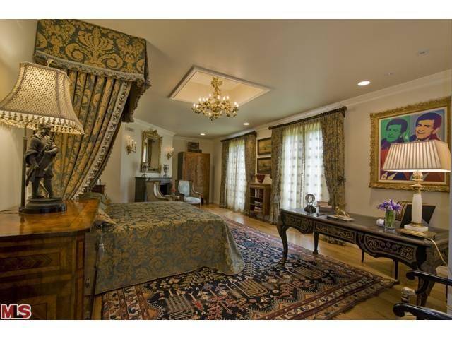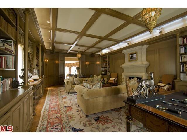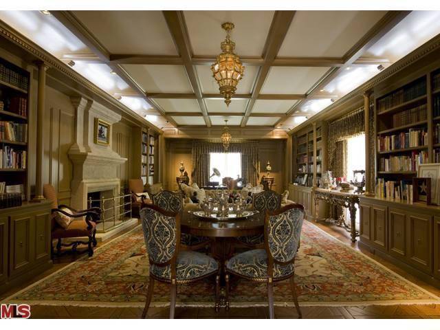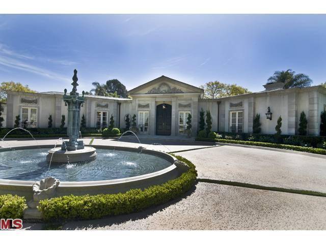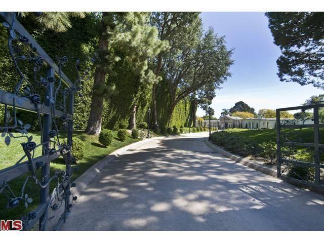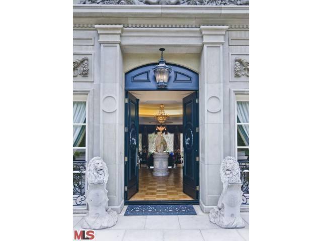 Located at 138 North Mapleton Drive in Los Angeles, the home is described as a “gated Classic Revival” in the listing and it sits on 2.4 acres of land. The 12,000-square-foot mansion features 8 bedrooms, 11.5 bathrooms, hardwood floors, a variety of ceiling types such as cathedral-vaulted and tray, a pool with two swim pavilions, a tennis court, a heart-shaped pool, guest house, service wing with laundry facilities, landscaped gardens, two garages for four bars, a living room salon, formal dining room, English-style library and more.