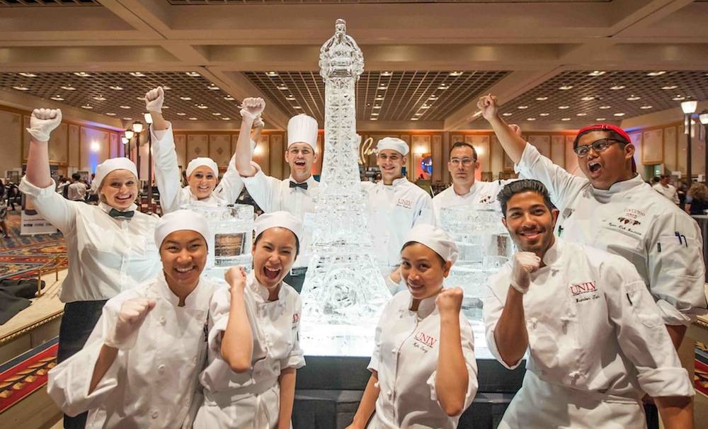 Guests enjoyed signature dishes prepared by UNLV’s talented culinary students throughout the venue including delicious antipastos, a seafood station with freshly shucked oysters and shrimp cocktail chilled around an ice sculpture of the Eiffel Tower, a slider station with unique offerings such as crab cakes and pulled pork, Asian cuisine including the standout sweet and spicy “Bang Bang Shrimp,” and innovative passed hors d’oeuvres such as the sweet and savory french toast with pork belly and maple syrup.