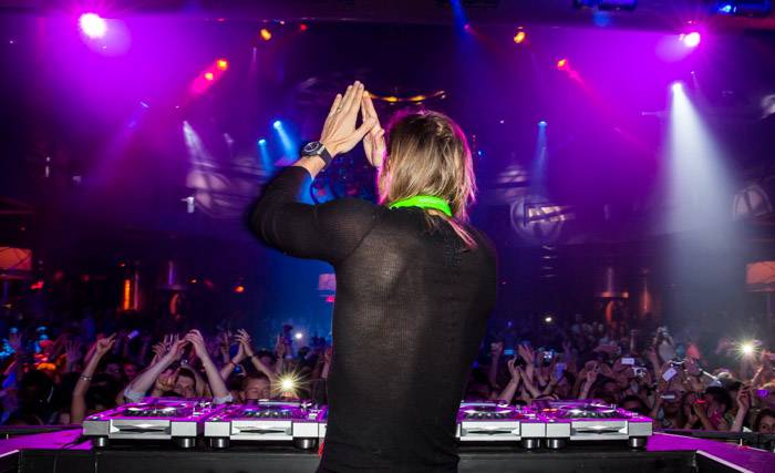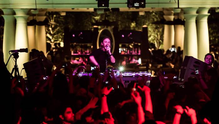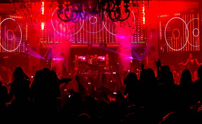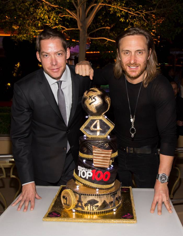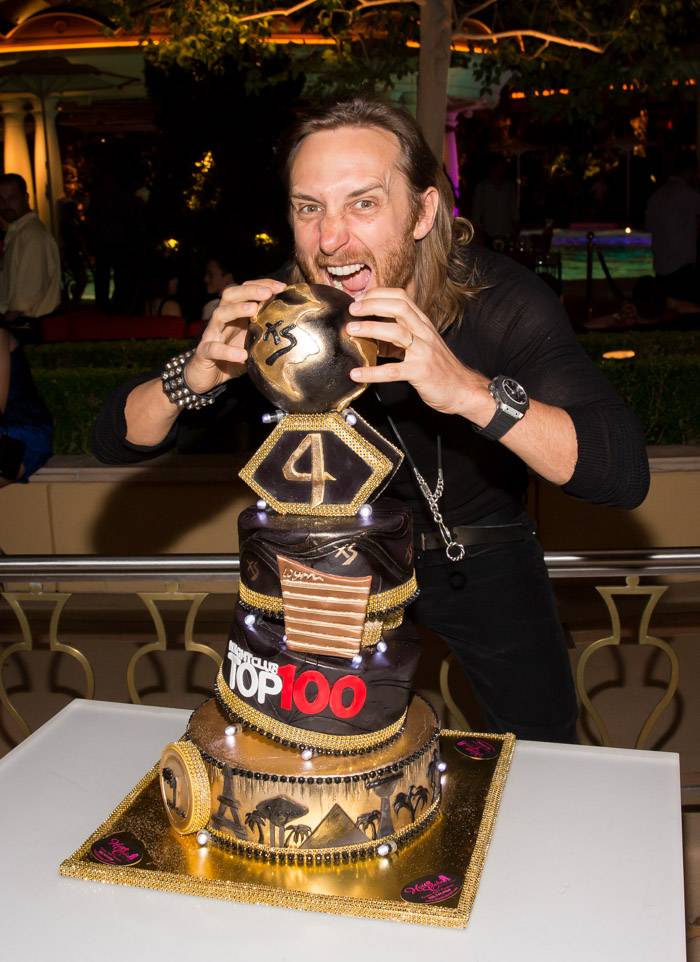 Guetta arrived shortly after 1 a.m. and took time to pose with the executive team and celebratory anniversary cake before jumping on stage to take over for Sultan & Ned Shepard. The production included a spinning deejay booth allowing Guetta to cater to the every need of his fans spanning throughout the 40,000-square-foot venue, both inside on the dance floor and outdoors surrounding the club’s famous pool.