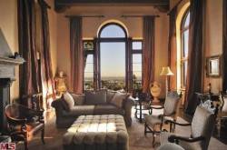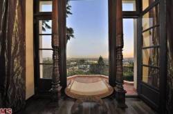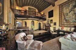 Located in the double-gated compound just above Laurel Canyon in West Hollywood, the three-story Spanish-style estate features 8,835 square feet of living space, seven bedrooms, 9 bathrooms, and sits on 3 acres of land. There are also extensively landscaped grounds, an outdoor patio and swimming pool.