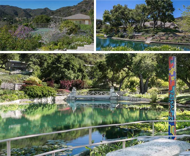 Kaufman’s 1964 ranch includes numerous exclusive features, such as a quarter mile tree-lined driveway, custom electronic gates, a parking lot-sized circular motor court, and numerous adjacent structures to the main residence. According to Real Estalker, there is a separate guests house, a caretaker’s apartment, a pavilion, a lighted tennis court and a “substantial maintenance building.”