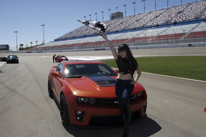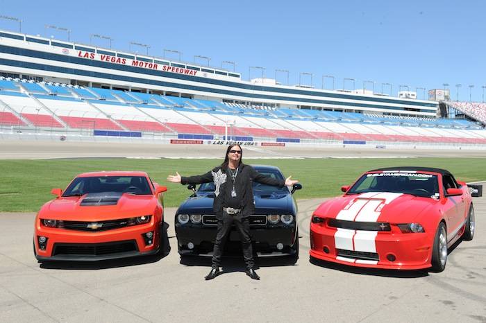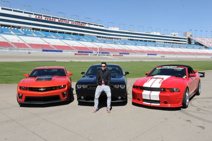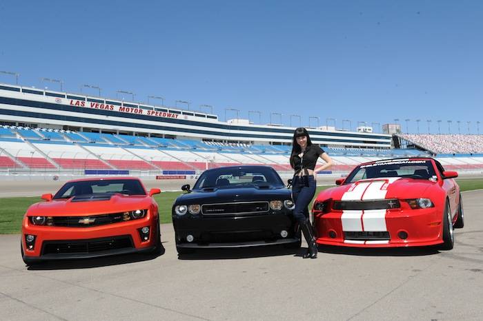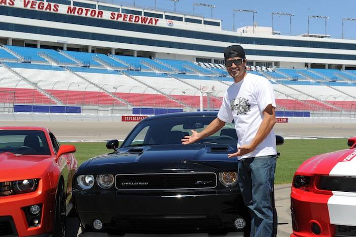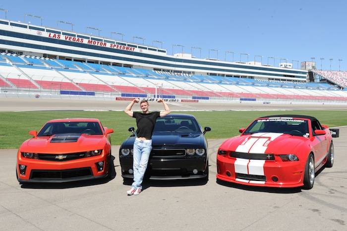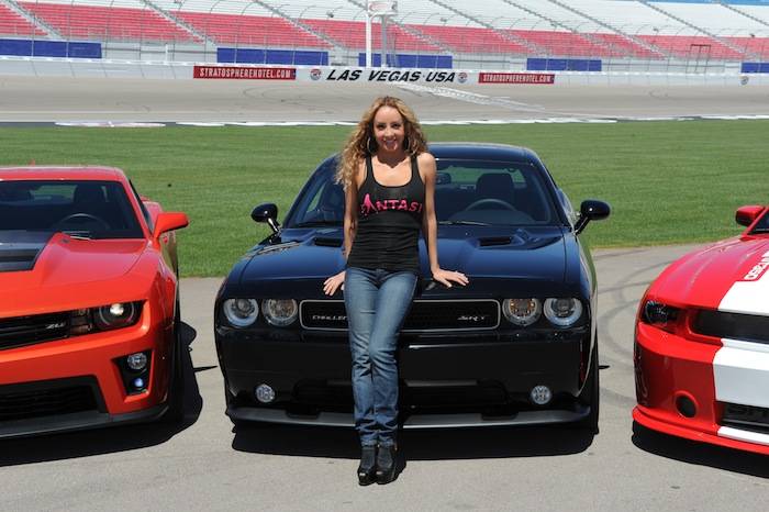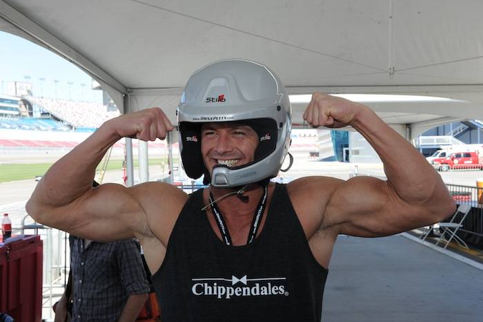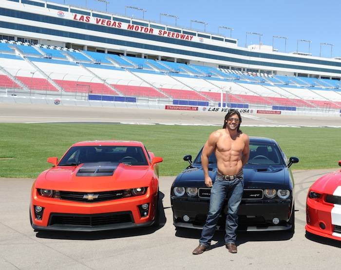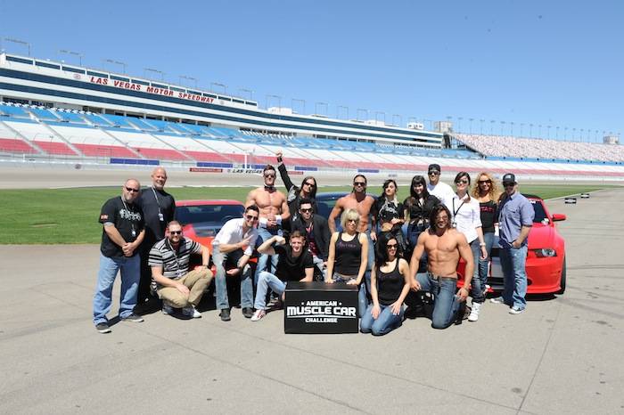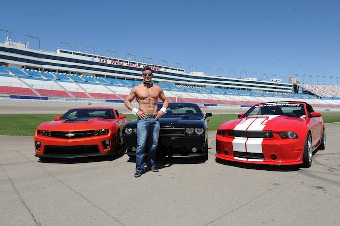 Vegas celebrities dropped by the Las Vegas Motor Speedway on Tuesday to help launch the new American Muscle Car Challenge by Richard Petty Driving Experience. Local celebrities included: Claire Sinclair from Stratosphere’s PINUP, dancers from Fantasy, John Payne from Raiding the Rock Vault, BMX pro Ricardo Laguna, the men from Thunder From Down Under, Top Chef contestant Carla Pellegrino, Nathan from Chippendales, Melody Sweets and Michal from Absinthe and Justin from Recycled Percussion.