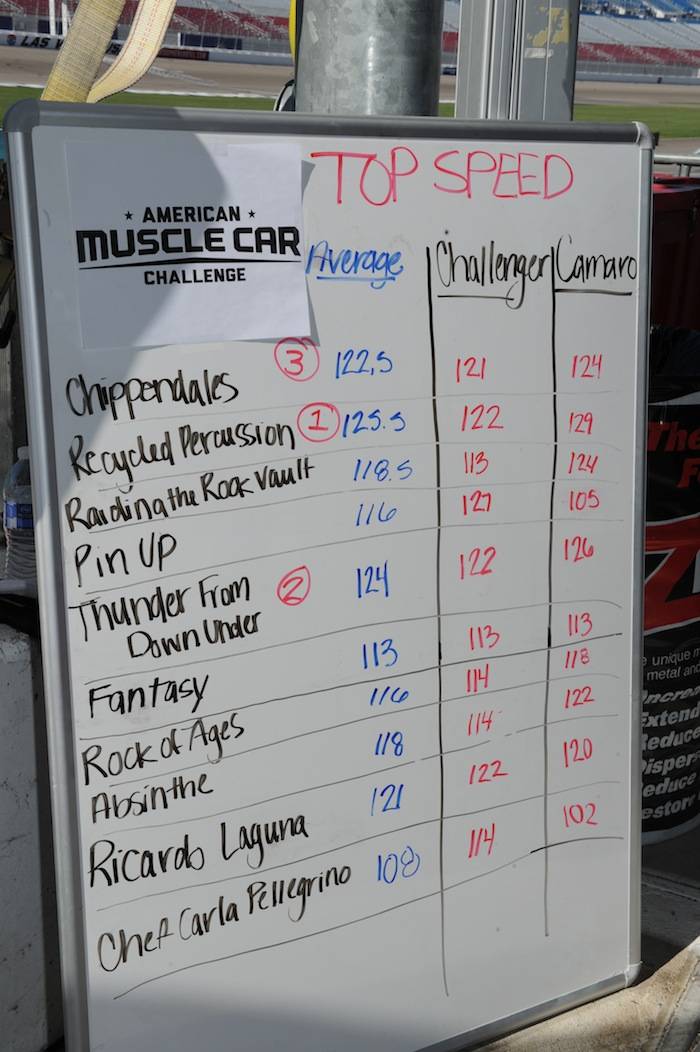 Ricardo Laguna won the acceleration module, going from 0 to 60 mph in 3.99 seconds in a Camaro.