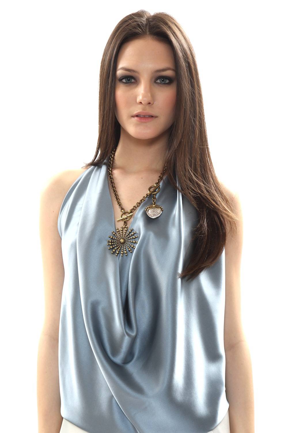 Romina Nabhen: You have some amazing convertible jewelry pieces such as the chain necklace with sunburst medallion. How many ways can it be worn?