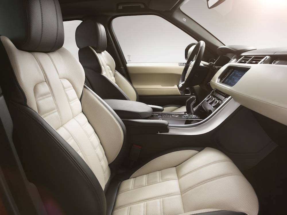 “So for the new 2014 Range Rover Sport, it still contains the Range Rover DNA, with a floating roof and clamshell bonnet. But it looks very contemporary, modern, with flush glazing, a big panoramic roof. On the interior, there’s a paring down of the switch gears so it’s more intuitive and a lot of the actuation is done through the screen.”